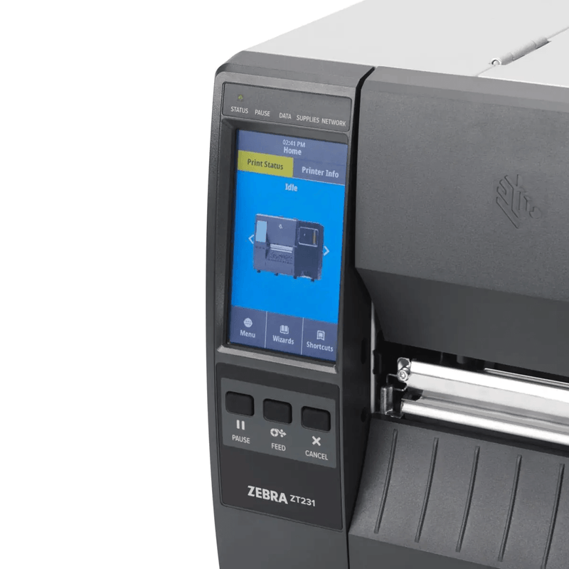 Featuring a small space-saving footprint with a durable metal frame, Bi-fold media door with a large clear window and side-loading supplies path for simplified media loading, the Zebra ZT231 is ideal for light industrial environments. Print crisp text and barcodes with optional 300 dpi resolution¹. Advance your label throughput with industry-leading print speeds up to 305mm/sec (12 ips) at 203 dpi. Reduce training time with the ZT231's easy-to-use 10.9cm (4.3in) full-colour touchscreen. See status at a glance, with access wizards and helpful how-to videos and make changes with the touch of a finger. Take advantage of Zebra's robust, ever growing Print DNA software suite for added capabilities. Easily configure, troubleshoot and manage your printers onsite or remotely via a web-based dashboard.