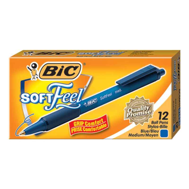 The BIC Softfeel Stic Ballpoint Pens have a soft rubber barrel and a grooved finger grip to ensure youre comfortable while youre writing. Each pens barrel colour matches the ink colour to help you quickly and easily find the right pen in your pencil case
