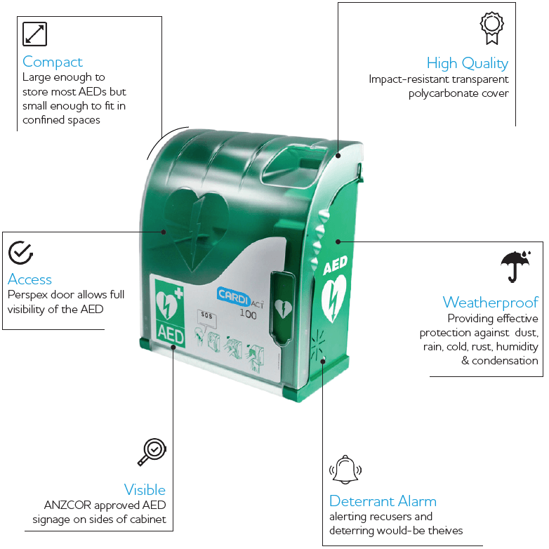 CardiAct AED/Defibrillator Alarmed Outdoor Weatherproof Cabinet Case Box