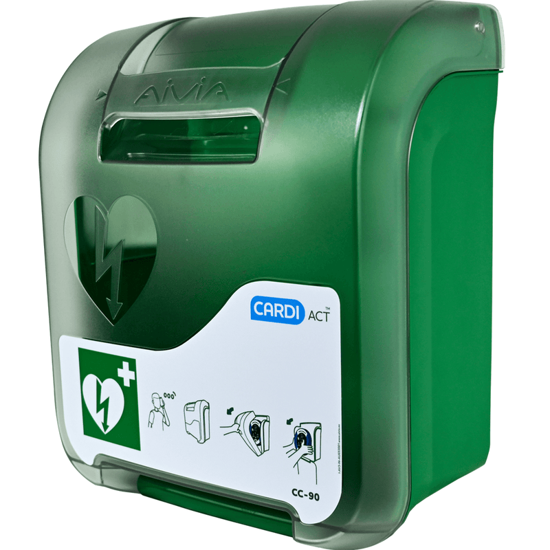 The CardiAct CC-90 Alarmed Outdoor Cabinet provides a compact and secure cabinet for storage of most AEDs. Designed for confined spaces, with its compact size the cabinet also provides clear visibility of the AED with a transparent polycarbonate door that includes ANZCOR approved signage for easy identification in emergencies.