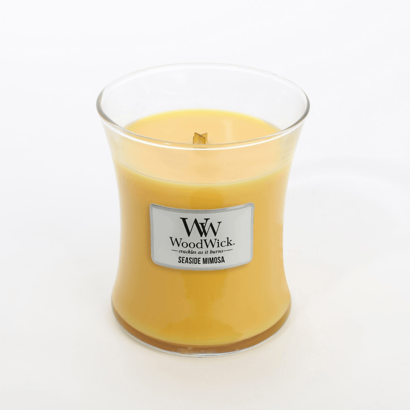 Medium Hourglass Woodwick® Candles fill your home with the soft crackle and inviting scents and a natural wooden wick that Crackles as it Burns™. The soothing crackle of a WoodWick® candle is created by a patented PLUSWICK® Innovation technology, designed to ensure a safe and consistent crackle experience for faster fragrance and a better burn while fragrancing your home with the soothing sound of a crackling fire. (3.88" x 4.5")