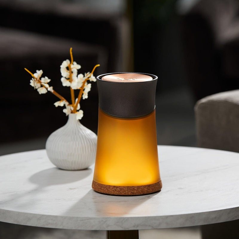 The WoodWick® Radiance Diffusers provide a style-conscious way to diffuse premium WoodWick® fragrances throughout the home. Boasting premium details such as a metal lid and real cork base, the Radiance Diffuser offers a captivating glow while gently diffusing sophisticated fragrance. With its cordless and battery-operated technology and ability to be placed in any room to elegantly and invitingly enhance the atmosphere, the WoodWick® Radiance Diffuser is sure to make an impact in any space.