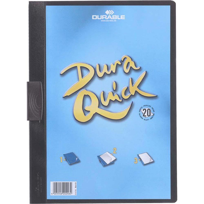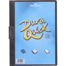 Duraquick, the clip folder with style has a clear soft plastic front cover and coloured rigid plastic back cover