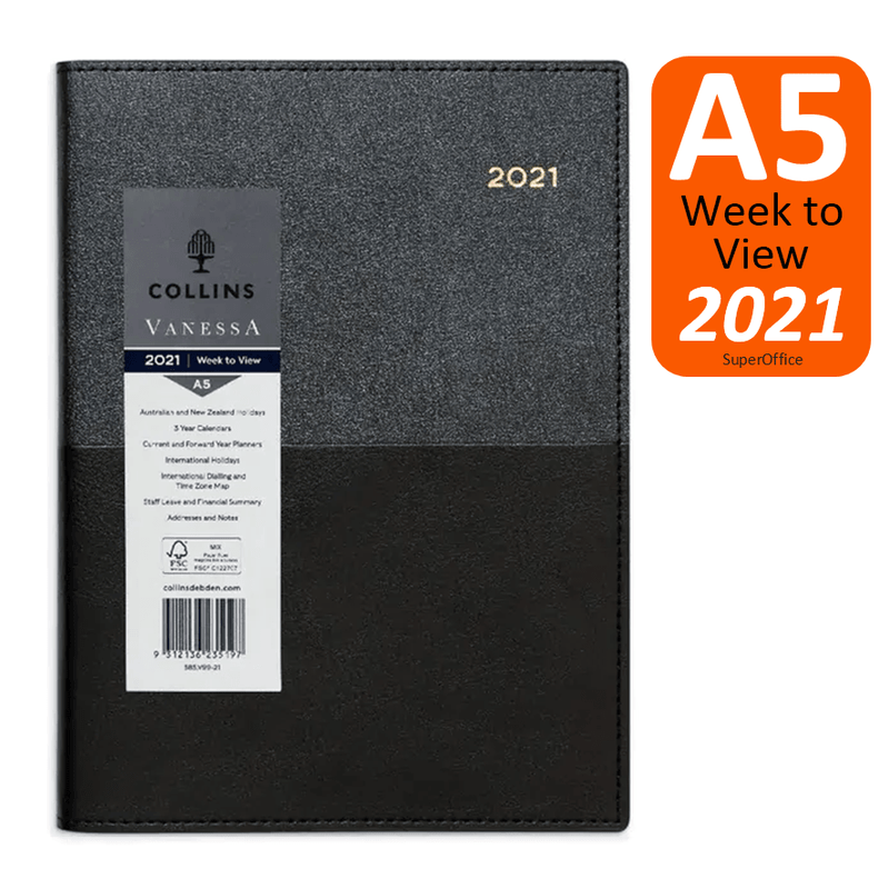 Collins Vanessa A5 Week To View 2021 Diary Black