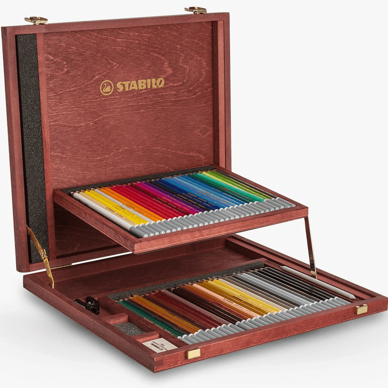 STABILO CarbOthello coloured pencils have semi-soft leads in a wood cased pencil form and are pre-sharpened. Each set is packaged in a metal box with a hinged lid.