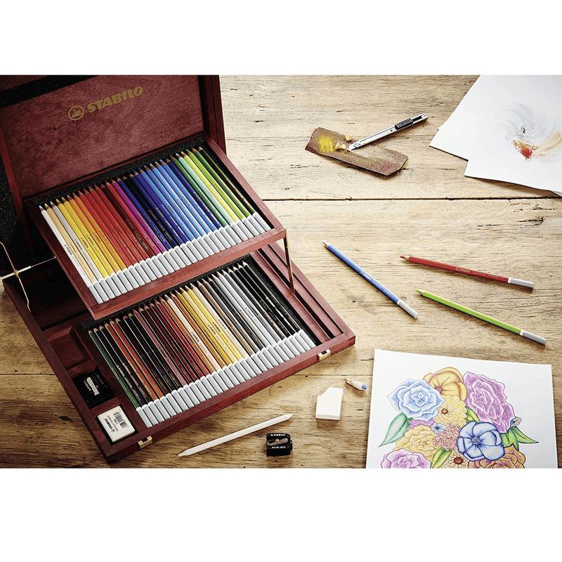STABILO CarbOthello 60 Chalk Pastel Coloured Pencils Artists Wooden Box Set