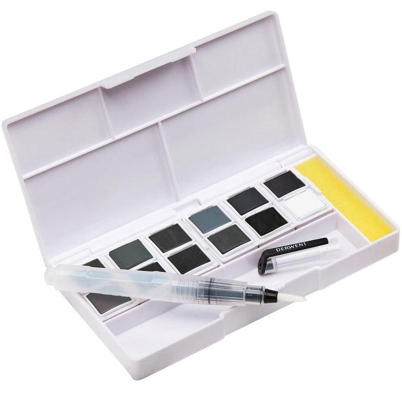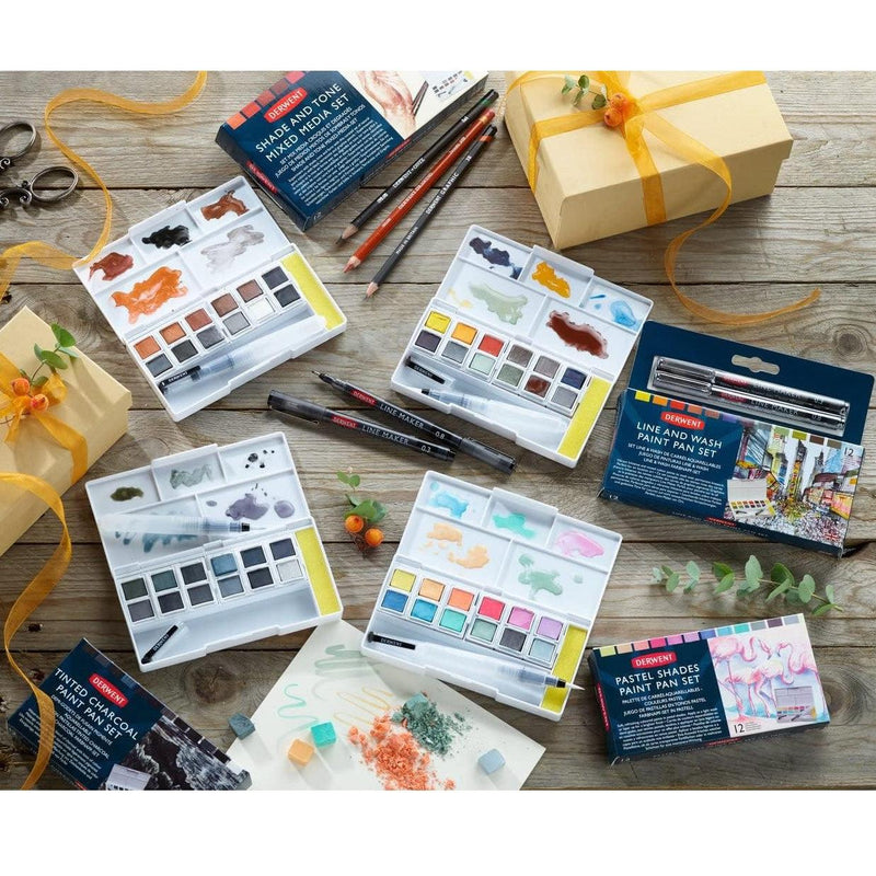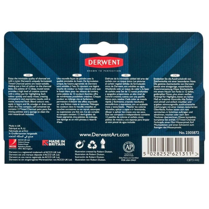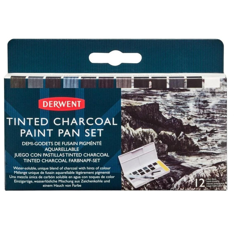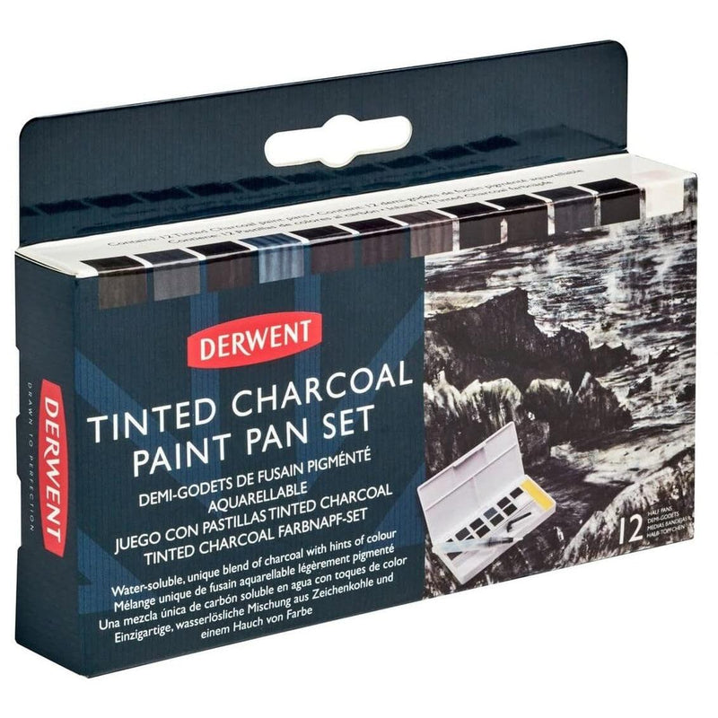 Derwent Tinted Charcoal Paint Pan Colours Set 12 + Waterbrush
