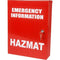 The door has 2 basic hinges and the information on the front door are 2 stickers