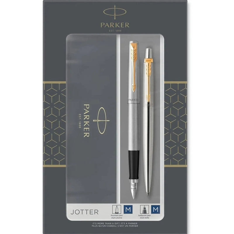 Parker Jotter Ballpoint and Fountain Duo Gift Set are the perfect gift for anyone who appreciates the slow art of expressing ideas on paper. Contains Jotter Fountain Penx1 and Ballpoint Penx1.
