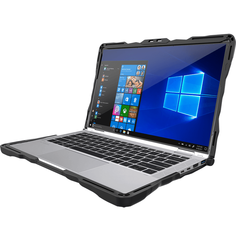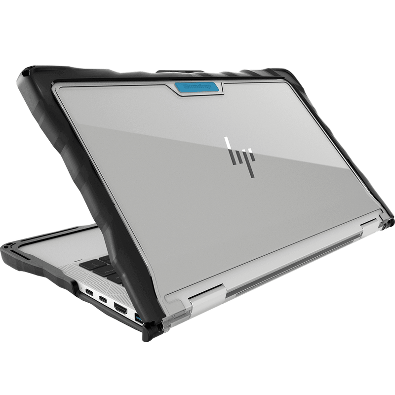 Gumdrop’s DropTech HP Elitebook x360 1030 G7/G8 Case for Windows is a shock-resistant combination of thick silicone bumper skin and rigid, transparent polycarbonate casing. This see-through windows on the top and bottom of the case allow you to personalize and identify protected laptops by asset tag, school logo, photos and more!