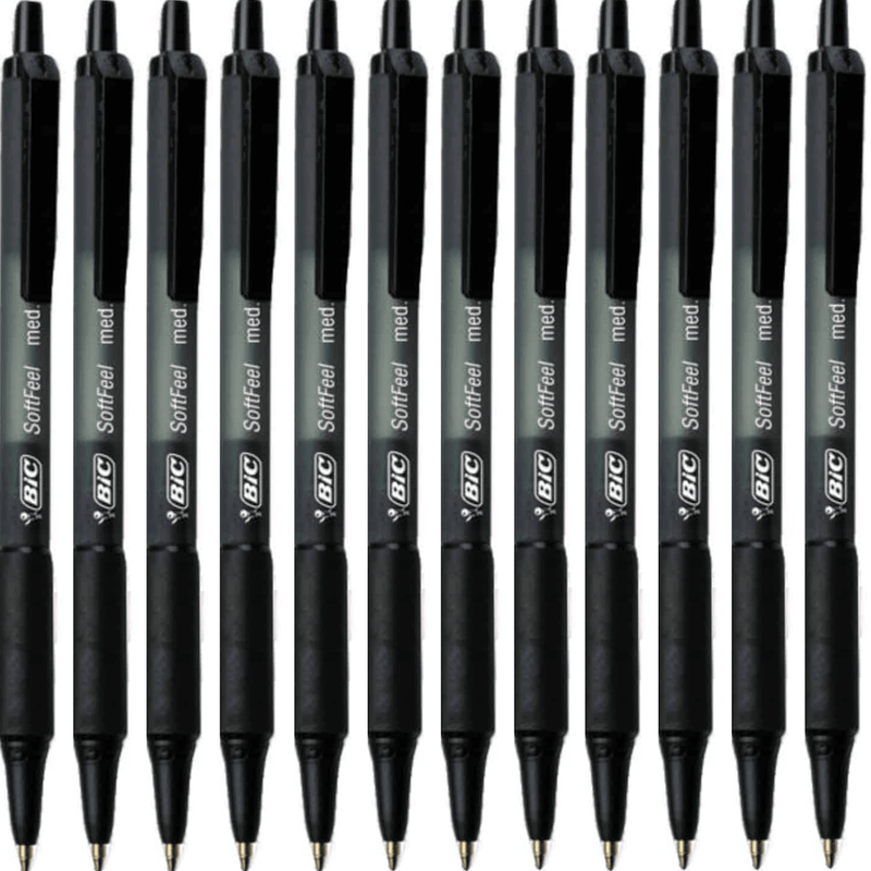 BIC Softfeel Retractable Ballpoint Pen Medium Black Box 12 Soft Feel