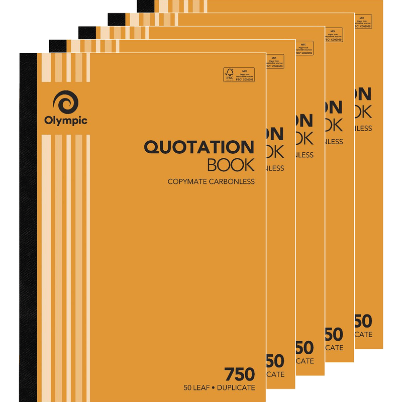 Olympic No.750 Carbonless Book makes it easy to keep track of your records and make duplicate copies. Contains 50 pages of pre-printed quotation templates and each page is individually numbered for easy referencing.