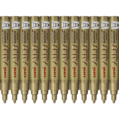 The uni-ball paint marker from uni-ball is an incredibly versatile oil based permanent marker that writes on almost all surfaces including metal, wood, glass, plastic, fabric and stone surfaces