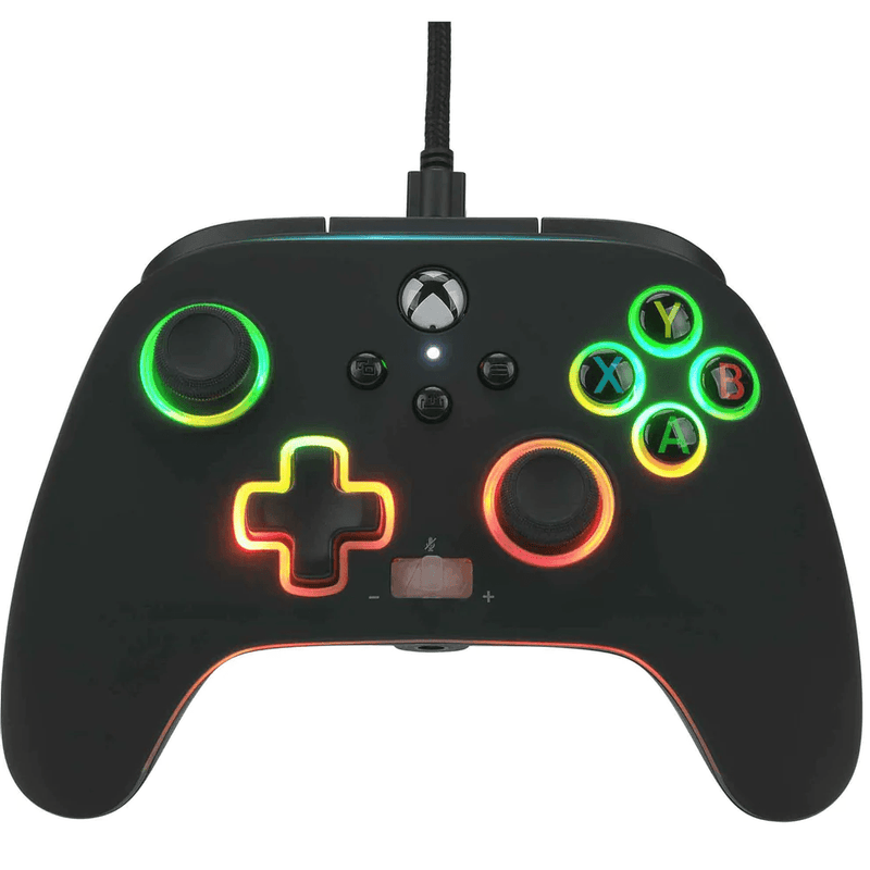 Illuminate your gameplay with the Spectra Infinity Enhanced Wired Controller for Xbox Series X|S. Officially licensed by Xbox, this one-of-a-kind gamepad offers a ton of customizable color combinations across three distinct light zones–choose different colors for each zone. A Share button, 3.5mm headset jack, volume dial with mic mute and precision-tuned thumb sticks complete this brilliant gamepad.