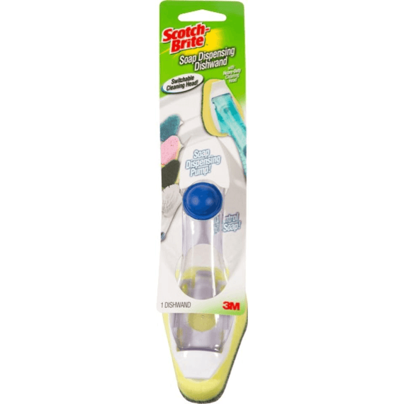 Scotch-Brite Soap Dispensing Dishwand features a long handle to keep hands out of the mess, replaceable scouring heads and a handle that can be filled with soap to give you extra cleaning power at the press of a button