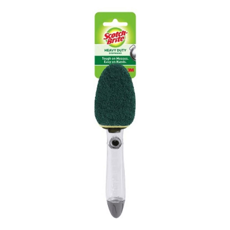 Scotch-Brite Soap Dispensing Dishwand features a long handle to keep hands out of the mess, replaceable scouring heads and a handle that can be filled with soap to give you extra cleaning power at the press of a button