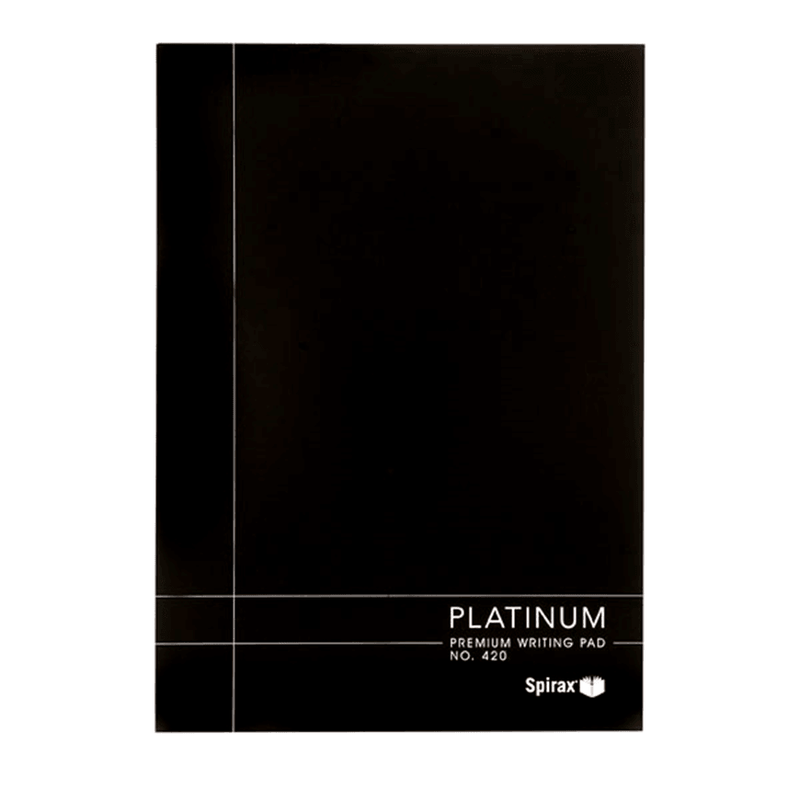 The Spirax Platinum writing pads are ideal for use in compendiums, binders or stand alone. Quality 80gsm paper is ideal for use with fineliners and ball point pens. Top bound with a sturdy glue binding and include 100 pages of quality Spirax paper
