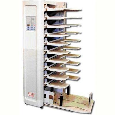 Programmable bin selection with electronic jam detection and can run online with various booklet makers