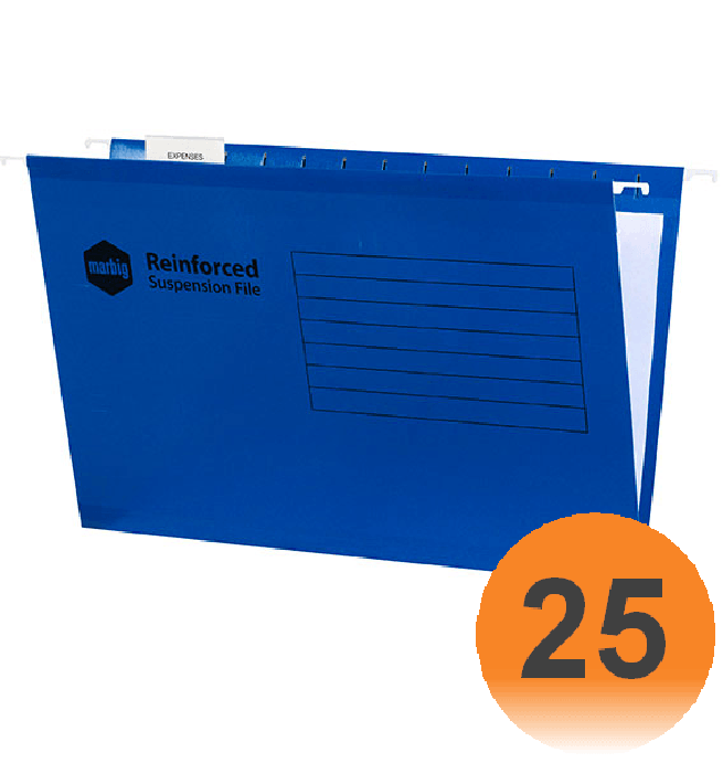 The Marbig reinforced suspension files are the perfect way to store all your important files. Made from manilla board, the range is available in a variety of colours.