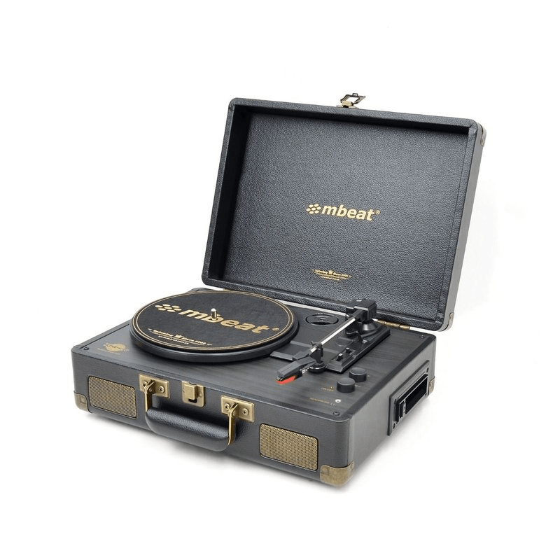 The mbeat® Uptown Retro Bluetooth Turntable & Cassette Player is a modern vinyl turntable with a cassette player and Bluetooth streaming capabilities, all in a portable, vintage suitcase design. New suspended sub-chassis design absorbs vibration and isolates noise, avoiding warping or skipping and keeps high fidelity sound. Coupled with upgraded front facing speakers with an improved sound stage, hear your records with unprecedented clarity and quality. MB-TR166BLK supports wireless streaming function, making it a stylish and powerful Bluetooth speaker. The unit includes a 3.5 mm headphone jack and RCA audio output for more personalised listening options.