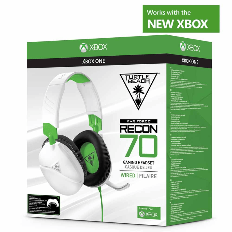 Lock in your next Victory Royale, your latest achievement and much more with the TURTLE BEACH® RECON 70 gaming headset officially licensed for Xbox One. Featuring Turtle Beach's latest lightweight and comfortable headset design for hours of play, with high-quality 40mm speakers and over-ear premium synthetic leather cushions that let you hear every crisp high and thundering low while blocking noise. Turtle Beach’s renowned high-sensitivity mic to ensure you are heard clearly and easily flips up to mute. The RECON 70 is also surround sound ready for Xbox One and compatible Windows 10 PCs and optimized for Microsoft's powerful Windows Sonic for Headphones. Finally, the versatile 3.5mm connection makes it perfect for swapping between Xbox One and PS4™ controllers, Nintendo Switch as well as PC and compatible mobile devices.