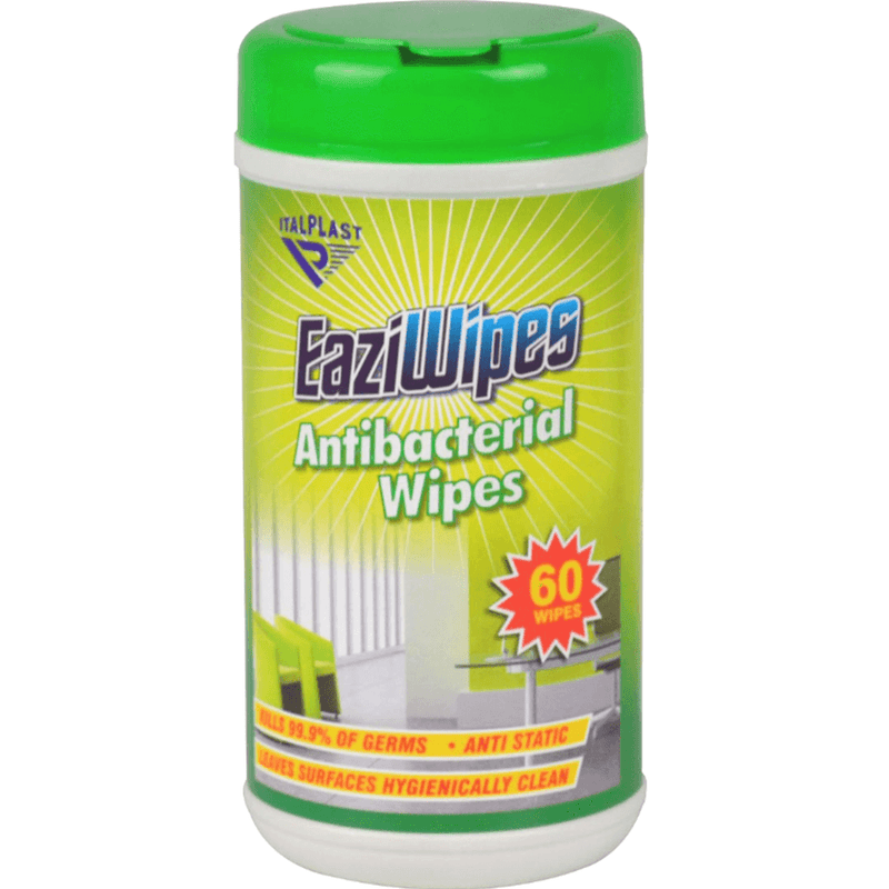 Italplast "Eaziwipes" Antibacterial wipes offer anti static protection and are a quick & effective way to hygienically clean & protect Office Desks, Workstations, General Office Equipment, Kitchen & Hardtop surfaces