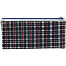 Made from strong, durable fabric in a classic blue and red tartan pattern