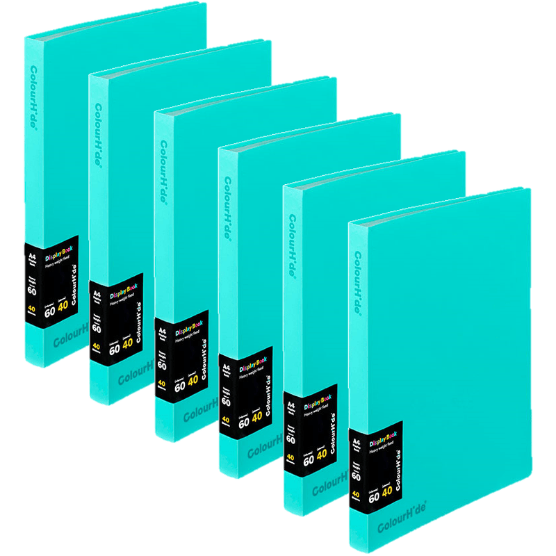 Colourhide Display Book 40 Pockets Sleeves A4 Aqua Blue Pack 6
