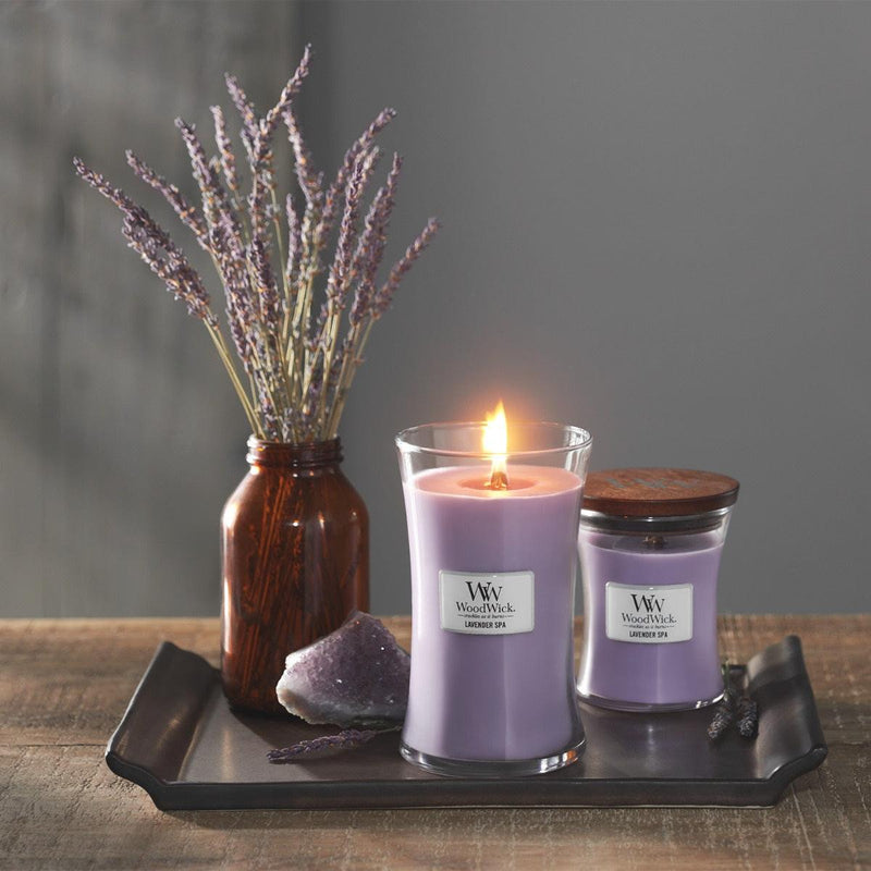 Large Hourglass Woodwick® Candles fill your home with the soft crackle and inviting scents and a natural wooden wick that Crackles as it Burns™. The soothing crackle of a WoodWick® candle is created by a patented PLUSWICK® Innovation technology, designed to ensure a safe and consistent crackle experience for faster fragrance and a better burn while fragrancing your home with the soothing sound of a crackling fire