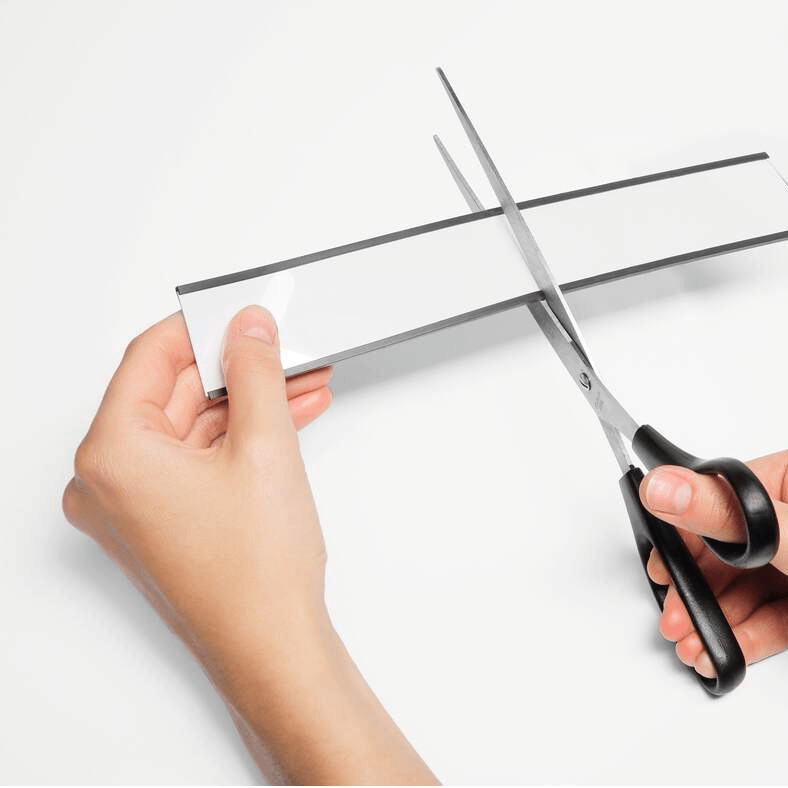 Label holder for magnetic attachement. Practical c-profile for easy insertion and secure hold of labels.