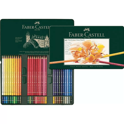 Faber-Castell 60 Classic Sketch Colour Pencils Tin Set Sharpener Eraser Graphite