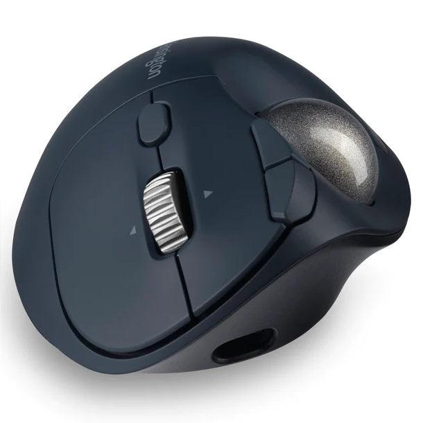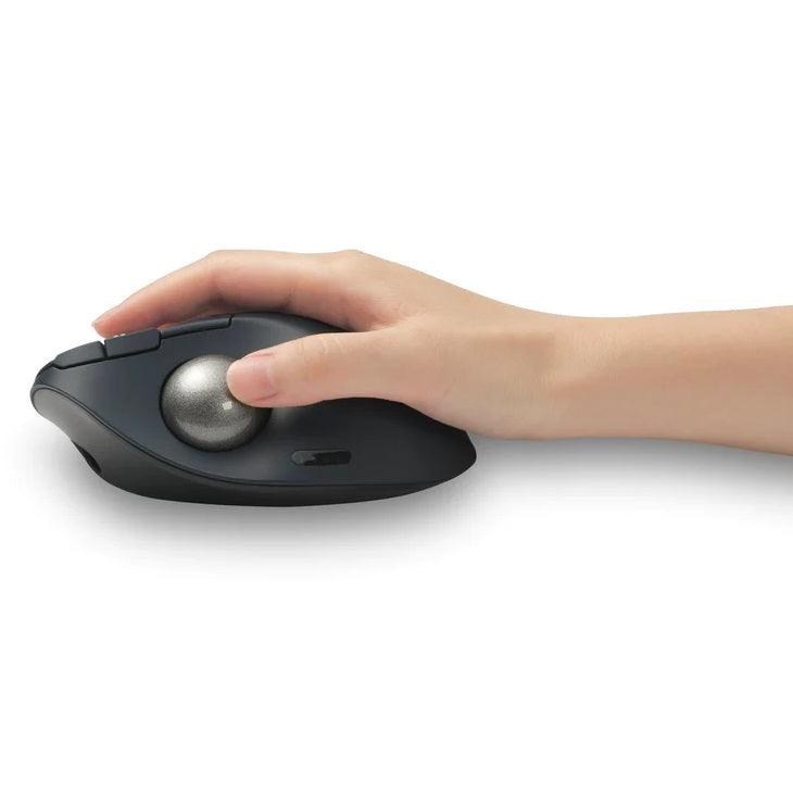 The Pro Fit® Ergo TB550 Trackball combines the feel of a wireless mouse with the convenience and accuracy of an advanced trackball. A sculpted ergonomic design with 45° tilt helps improve wrist and forearm alignment. The TB550 takes up less desk space than a conventional mouse and is more comfortable during extended use. Users can choose Bluetooth® Low Energy (LE) and 2.4GHz wireless connection options for maximum flexibility. The TB550 offers seven programmable buttons and adds an enhanced 4D scroll wheel that provides intuitive four-direction scrolling. It also features long-life rechargeable battery, made of 51% recycled plastic, and patented ball ejection system for easy cleaning.