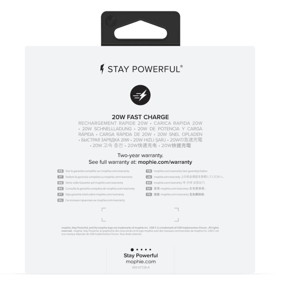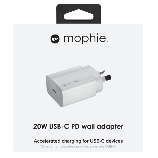 Upgrade to a faster charge! mophie's 20W USB-C PD wall charger gives your devices a powerful boost of power when they need it most.