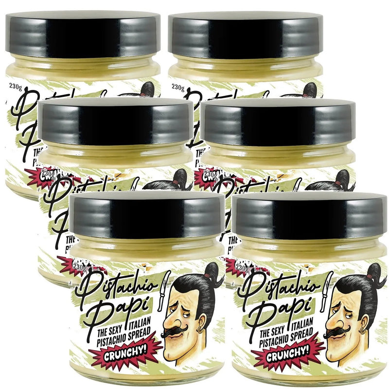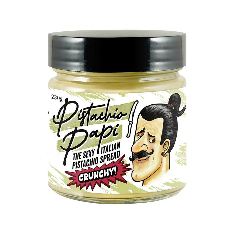 Elevate your pistachio game with Pistachio Papi's CRUNCHY pistachio spread! This infusion of Papi's famous spread and crunchy pistachio pieces will leave your taste buds nutty with delight.