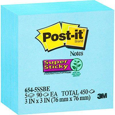 Post-It 654-5Ssbe Super Sticky Notes 76 X 76Mm Electric Blue