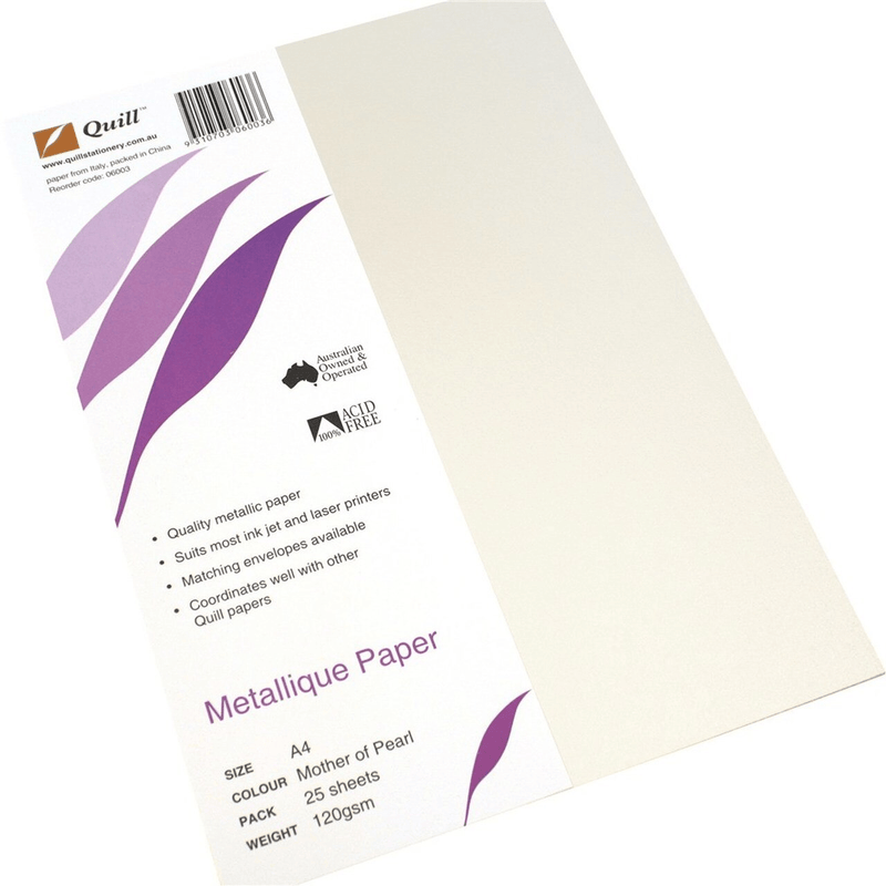 Quill Metallique Paper 120GSM A4 Mother Of Pearl Pack 25