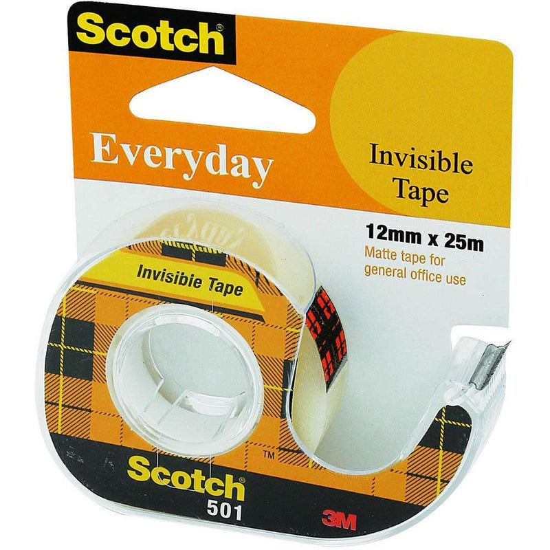 Scotch everyday invisible tape takes care of all the everyday home, office or school adhesive jobs. Good quality, general purpose adhesive stationery tape