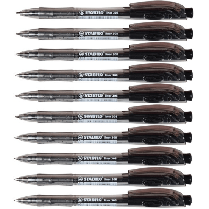 Stabilo 308 Liner Retractable Ballpoint Pen Medium Black Box 10