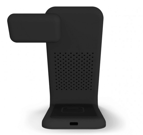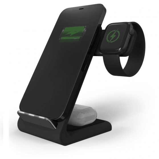 A wireless charging stand that recharges three devices at once. Slim and sleek, with a small footprint that takes up minimal space on a desk or nightstand. ChargeTree Swing charges your wireless enabled iPhone, AirPods, and even your Apple Watch at the same time.
