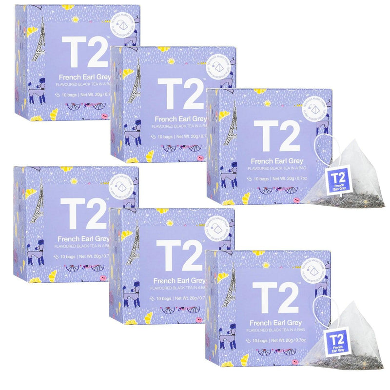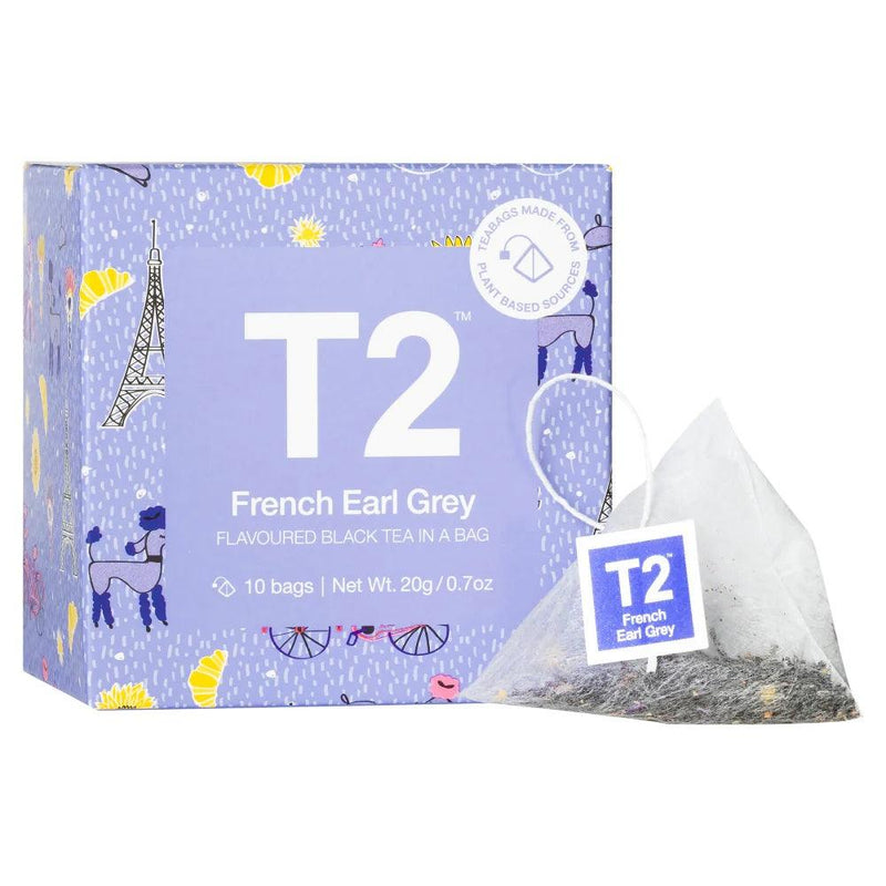 T2 French Earl Grey is a black tea with sweet fruits, rose, sunflower and hibiscus, and a touch of bergamot to finish.