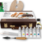 Also included is a Blending & Glazing Medium, a 10” x 8” (25.4cm x 20.3cm) Artists’ canvas board, a Jasart Painting Knife, two flat hog bristle brushes, and a wooden palette, all presented in a beechwood wooden box featuring a comfortable carry-handle. This wonderful wooden box truly holds all you need to get painting with oils.